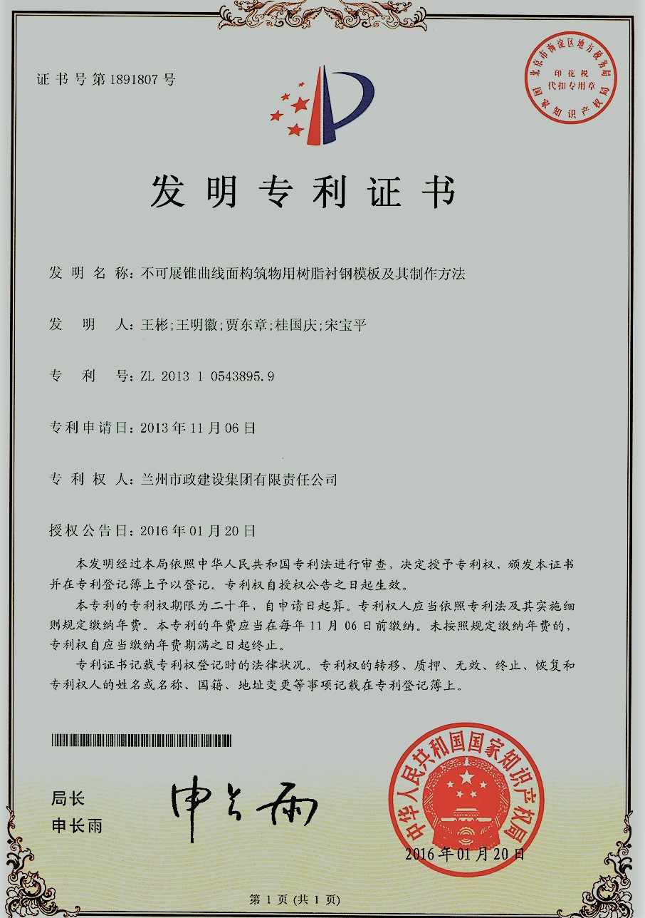 不可展錐曲線面構(gòu)筑物用樹脂襯鋼模板