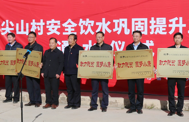通水儀式上,蘭州市國資委、榆中縣委縣政府、馬坡鄉(xiāng)黨等政府領導在致辭中向各援建單位表示感謝,對蘭州市政建設集團在圓滿完成施工任務中所體現(xiàn)的政治擔當、社會擔當和責任擔當給予充分肯定。市國資委、榆中縣政府聯(lián)合授予各援建單位“助力脫貧、圓夢小康”獎牌。