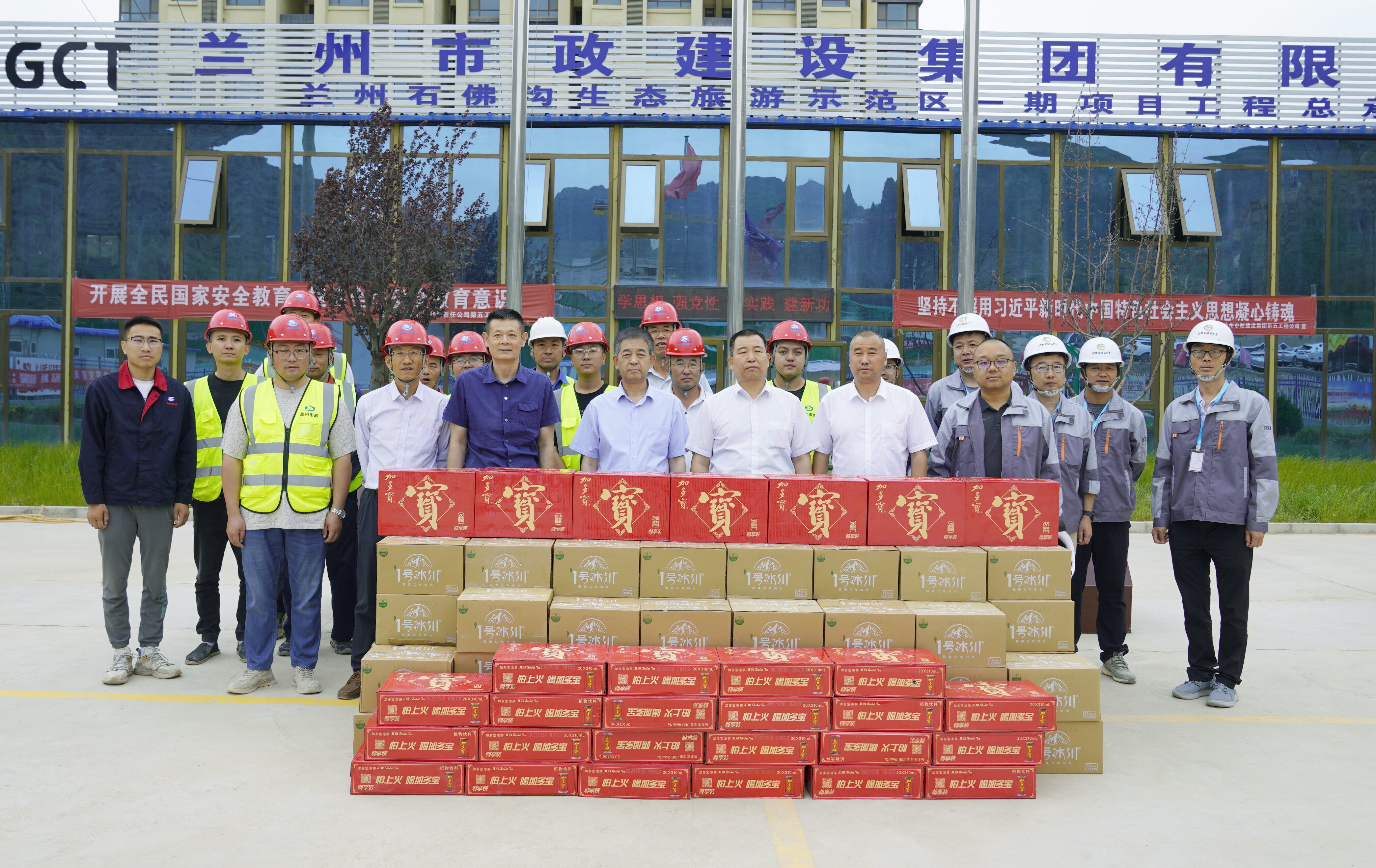 7月5日上午,甘肅文旅產(chǎn)業(yè)集團(tuán)有限公司黨委副書記、工會主席王寧一行深入到公司承建的石佛溝生態(tài)旅游示范區(qū)項目部,代表集團(tuán)看望慰問高溫下堅守在施工一線的廣大員工,送去礦泉水和飲料,表達(dá)了對基層員工的人文關(guān)懷。