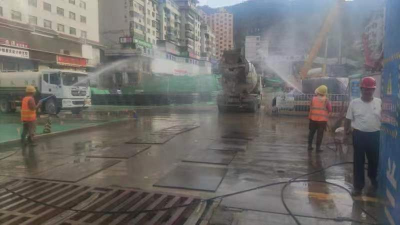 為確保大氣污染防治工作落到實(shí)處,增強(qiáng)項(xiàng)目參建人員大氣污染治理防范意識,保證項(xiàng)目建設(shè)順利進(jìn)行,四公司主要領(lǐng)導(dǎo)靠前指揮,與蘭州市環(huán)保局、城市執(zhí)法局、質(zhì)監(jiān)站等單位溝通協(xié)調(diào),結(jié)合項(xiàng)目地處鬧市區(qū)實(shí)際,制定大氣污染防治措施,并組織項(xiàng)目部全體人員召開大氣污染整治專題會議,對大氣污染防治工作的相關(guān)要求進(jìn)行部署和落實(shí)。一是全面落實(shí)公司各項(xiàng)決策部署和子(分)公司《關(guān)于進(jìn)一步加強(qiáng)施工大氣污染管理工作的通知》要求,提高思想認(rèn)識,轉(zhuǎn)變工作作風(fēng),落實(shí)工作職責(zé),切實(shí)抓緊抓實(shí)抓好各項(xiàng)措施落實(shí)落細(xì),以實(shí)際舉措防治大氣污染,確??諝赓|(zhì)量持續(xù)改善。二是加強(qiáng)宣傳引導(dǎo),發(fā)揮黨建工作引領(lǐng)作用,提高政治站位,緊盯目標(biāo)任務(wù),突出重點(diǎn)工作,堅(jiān)持目標(biāo)導(dǎo)向,劃分責(zé)任區(qū),責(zé)任到人,強(qiáng)化考核問效,為安全文明施工生產(chǎn)提供保障。三是狠抓揚(yáng)塵治理。各參建員工要牢固樹立大局意識,責(zé)任意識、擔(dān)當(dāng)意識,嚴(yán)格落實(shí)“六個百分百”要求,齊抓共管,加強(qiáng)施工現(xiàn)場、道路揚(yáng)塵管控,督促各施工作業(yè)隊(duì)文明施工,嚴(yán)格落實(shí)各項(xiàng)防塵抑塵降塵措施,促進(jìn)項(xiàng)目建設(shè)順利推進(jìn)。四是加大揚(yáng)塵污染治理物資設(shè)備的投入。項(xiàng)目部在施工周邊居民樓上安裝噴淋系統(tǒng)噴霧降塵,施工現(xiàn)場發(fā)泡機(jī)噴水抑制塵土飛揚(yáng),有效減少揚(yáng)塵污染。施工場區(qū)道路、加工區(qū)地面進(jìn)行硬化處理,裸露場地進(jìn)行全覆蓋,鉆孔泥漿自然脫水固化后及時使用封閉式運(yùn)輸車輛外運(yùn)。車輛出入口安裝車輛自動沖洗裝置,專人負(fù)責(zé),檢查車輛外部、底盤、輪胎處不得沾有污物和泥土,嚴(yán)禁車輛帶泥上路。五是加大巡查和預(yù)防力度。項(xiàng)目部安排專人加強(qiáng)對揚(yáng)塵污染源的巡查和檢測,不定時進(jìn)行場地清潔、灑水,及時處理揚(yáng)塵污染問題。