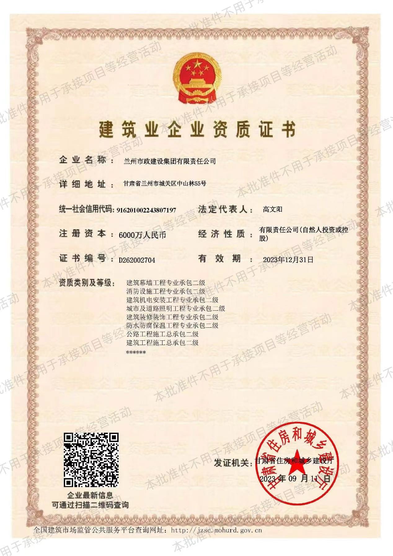 近日,經(jīng)甘肅省住房和城鄉(xiāng)建設(shè)廳核準,公司取得了建筑幕墻工程專業(yè)承包二級、消防設(shè)施工程專業(yè)承包二級、建筑機電安裝工程專業(yè)承包二級資質(zhì),標志著公司在業(yè)務(wù)領(lǐng)域方面的重大突破。