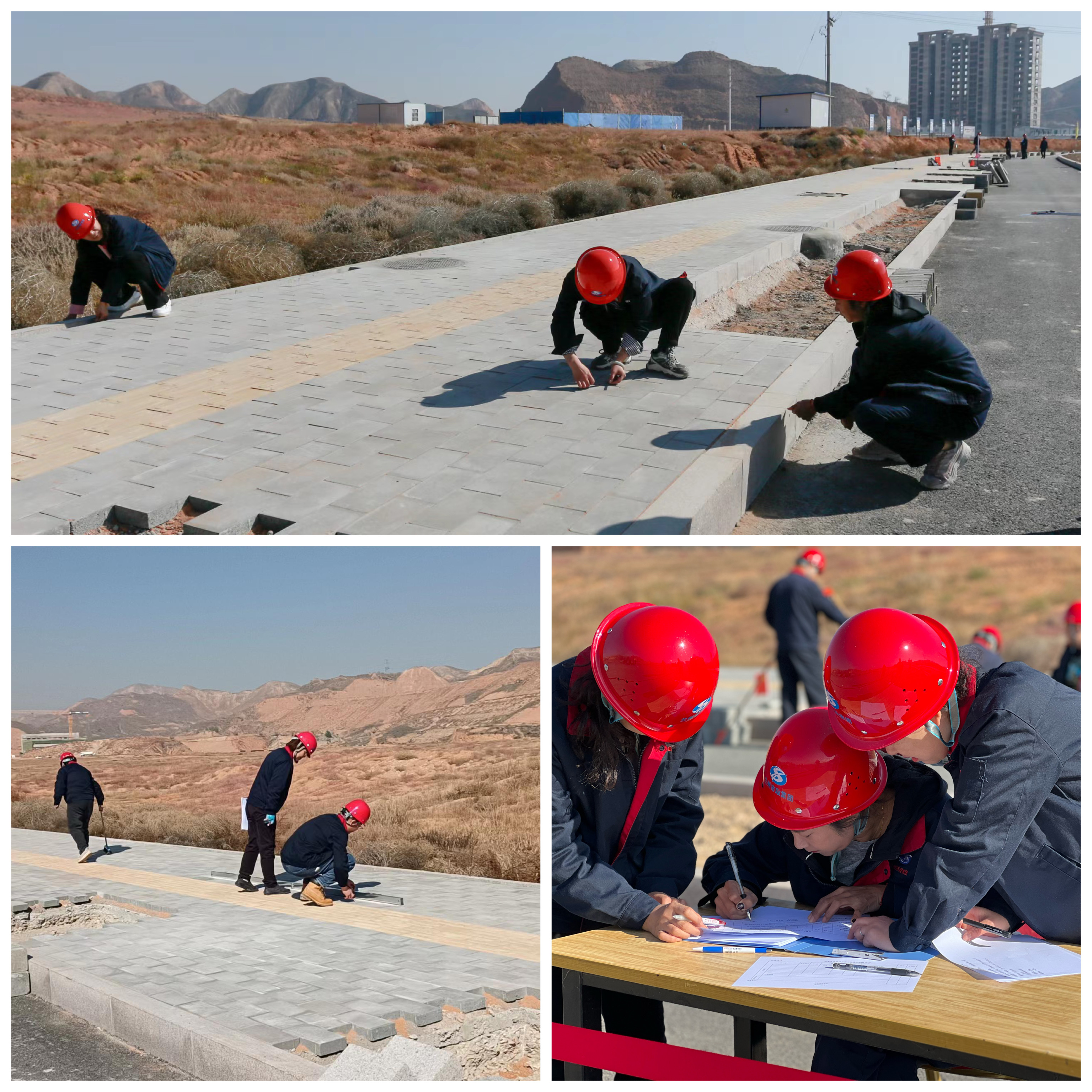 你方唱罷我登場,質量崗位比武,分為理論和實操兩部分,各參賽選手拿到分項工程應檢測的項目內容表格以及質檢資料樣表后,個個全神貫注、胸有成竹,力爭在限定時間內完成。實操部分主要是對現(xiàn)場人行道及路緣石的平整度、直順度等實體質量和外觀質量進行檢查,各選手按步驟邊測量邊記錄,環(huán)環(huán)相扣,一絲不茍,按照規(guī)范對分項工程的外觀進行仔細檢測,認真評定,確保工程不留瑕疵。