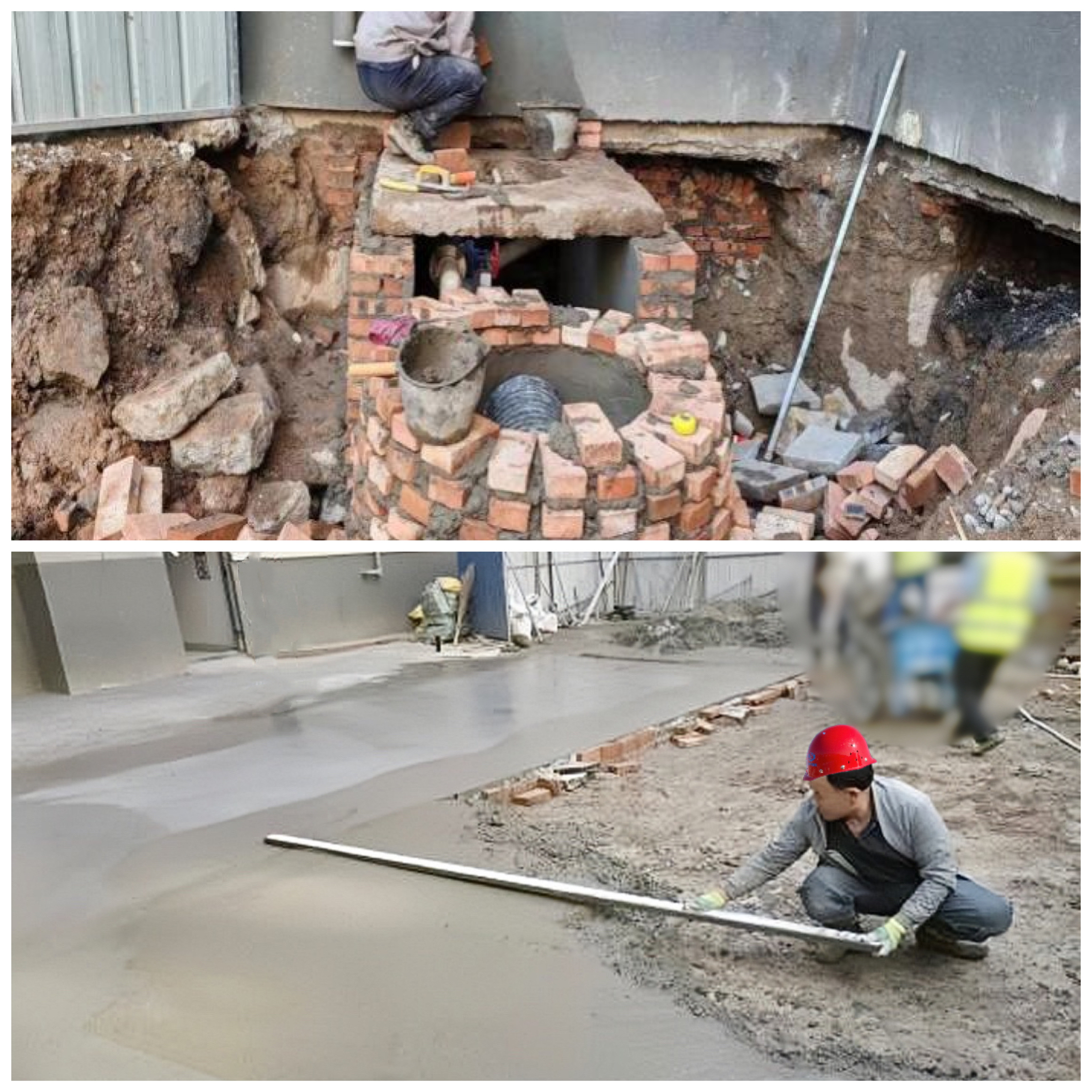 為有效解決問題,白銀路街道徐家巷社區(qū)請求公司給予幫助。作為轄區(qū)共建單位,為民解困、國企擔當責無旁貸,公司立即安排第五工程公司與社區(qū)對接。五公司接到任務后,第一時間組織人員對第一新村小區(qū)進行實地勘察。此時正是公司各項目大干期間,但為了能在冬季供暖前修繕好小區(qū)地基,第五工程公司從項目部抽調精干作業(yè)隊,經過前期查勘現場,制定作業(yè)計劃,10月21日,作業(yè)隊與施工機械正式進駐現場,加班加點挖掘塌陷地面、清除污水淤泥、并逐一更換破損管道,經過十多天的奮力搶修,沉降地基修繕一新。