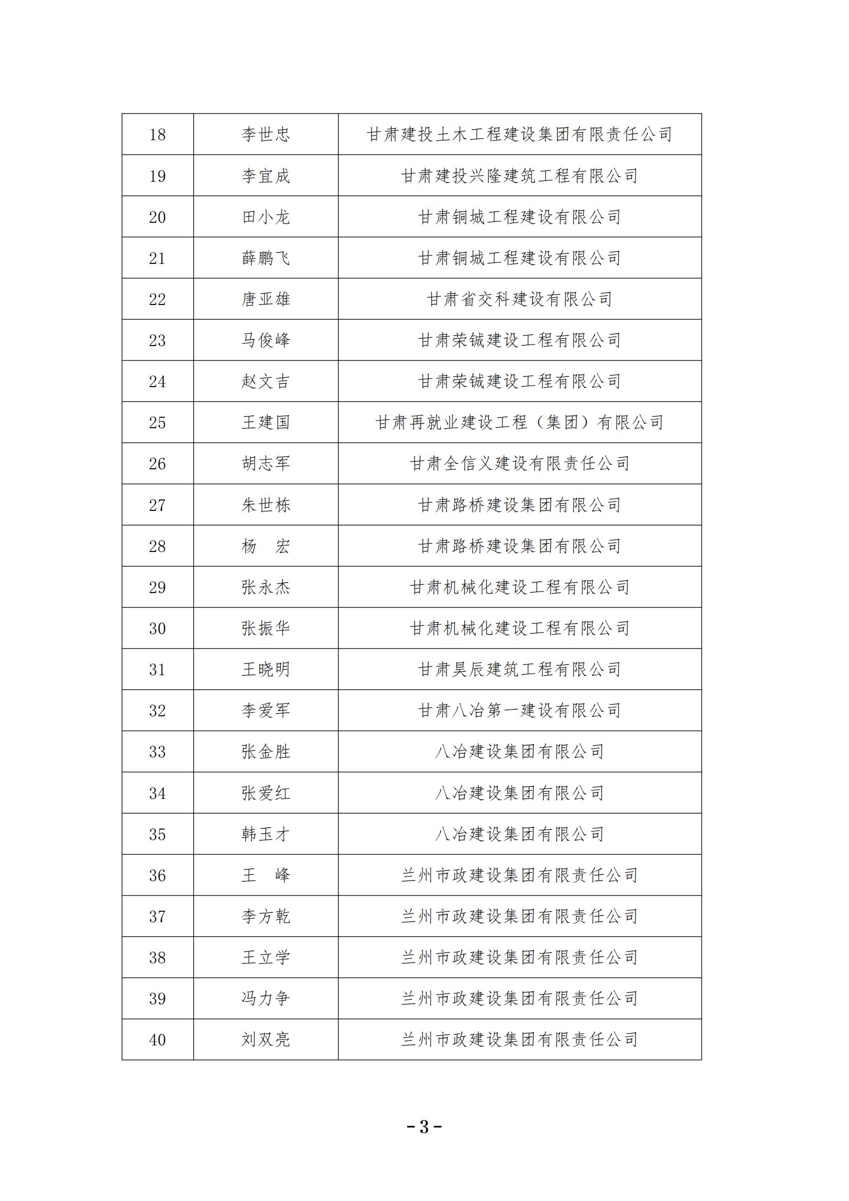 近日,甘肅省建筑業(yè)協(xié)會發(fā)布2023 年甘肅省建設(shè)工程文明工地和甘肅省誠信建造師評選結(jié)果,公司承建的渭源縣渭河源景區(qū)旅游服務(wù)能力提升項目、蘭州石佛溝生態(tài)旅游示范區(qū)一期工程、熱電聯(lián)產(chǎn)城市一次供熱管網(wǎng)建設(shè)項目(西固區(qū))、甘肅瑪雅冰川礦泉水股份有限公司年產(chǎn)18萬噸天然水開發(fā)項目、張掖平山湖大峽谷景區(qū)旅游基礎(chǔ)設(shè)施建設(shè)項目、涼州區(qū)職業(yè)中等專業(yè)學校 學生住宿樓建設(shè)項目6項工程獲得2023年“甘肅省建設(shè)工程文明工地”榮譽稱號。王峰、李方乾、王立學、馮力爭、劉雙亮5名同志獲得“甘肅省誠信建造師”榮譽稱號。