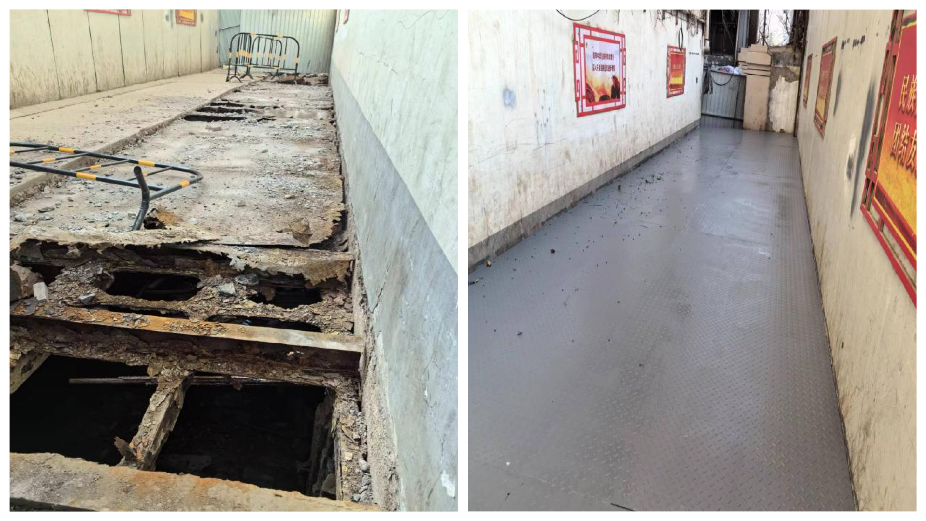 該橋梁位于小西湖東街,連接?xùn)|西兩側(cè)巷道,周圍居民樓密集,并有一座小學(xué),是廣大群眾和學(xué)生日常生活、上學(xué)的重要交通通道。因長期處于洪道之上,在陰暗潮濕的環(huán)境中,橋體下部支撐結(jié)構(gòu)嚴(yán)重銹蝕,橋面破損,造成極大的安全隱患,嚴(yán)重影響了當(dāng)?shù)鼐用竦某鲂小?/span>