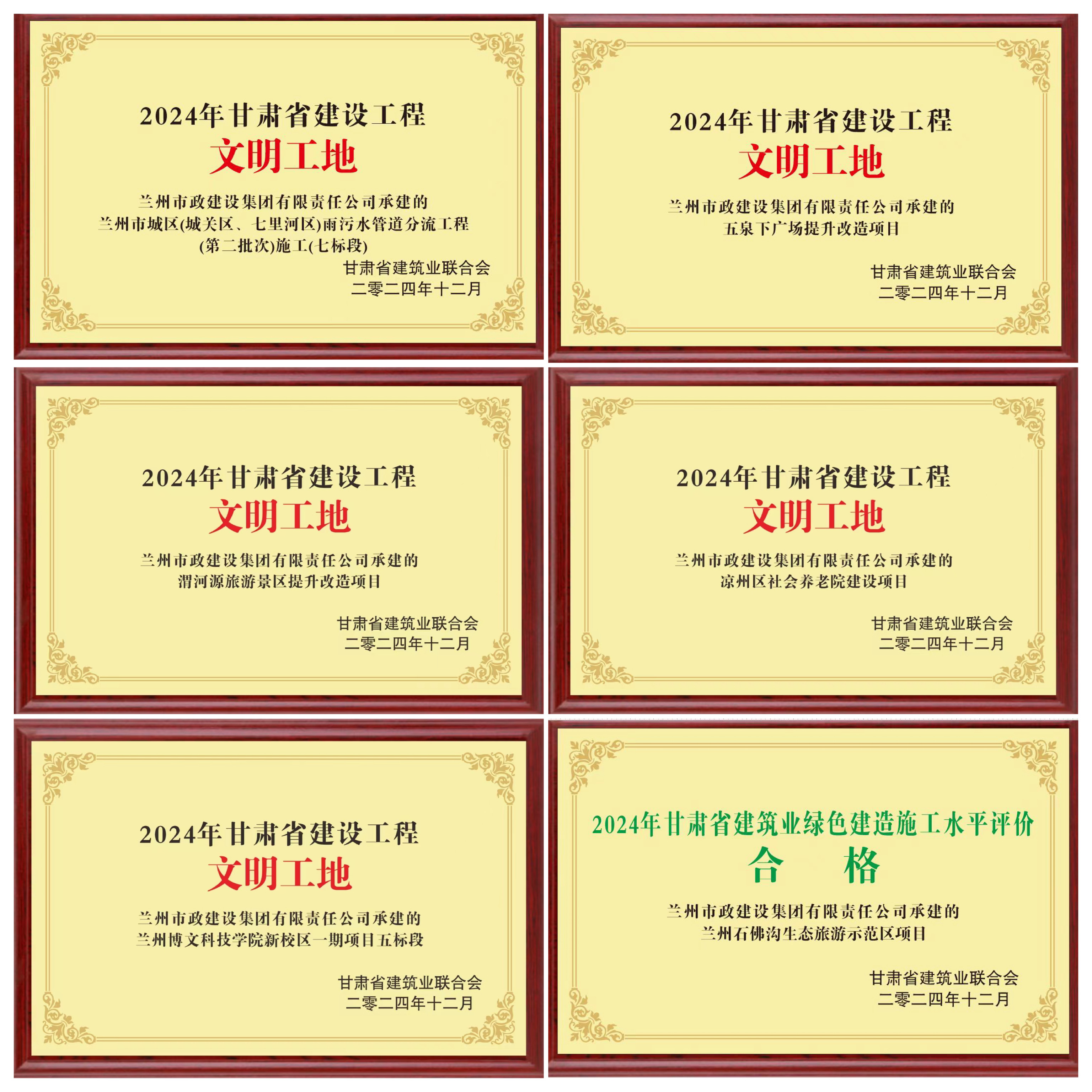 公司承建的涼州區(qū)社會(huì)養(yǎng)老院建設(shè)項(xiàng)目、蘭州博文科技學(xué)院新校區(qū)一期項(xiàng)目五標(biāo)段、蘭州市城區(qū)(城關(guān)區(qū)、七里河區(qū))雨污水管道分流工程(第二批次)施工(七標(biāo)段)、五泉下廣場(chǎng)提升改造項(xiàng)目、渭河源旅游景區(qū)提升改造項(xiàng)目獲評(píng)2024年“甘肅省建設(shè)工程文明工地”,蘭州石佛溝生態(tài)旅游示范區(qū)項(xiàng)目獲評(píng)“綠色建造施工水平評(píng)價(jià)合格項(xiàng)目”。